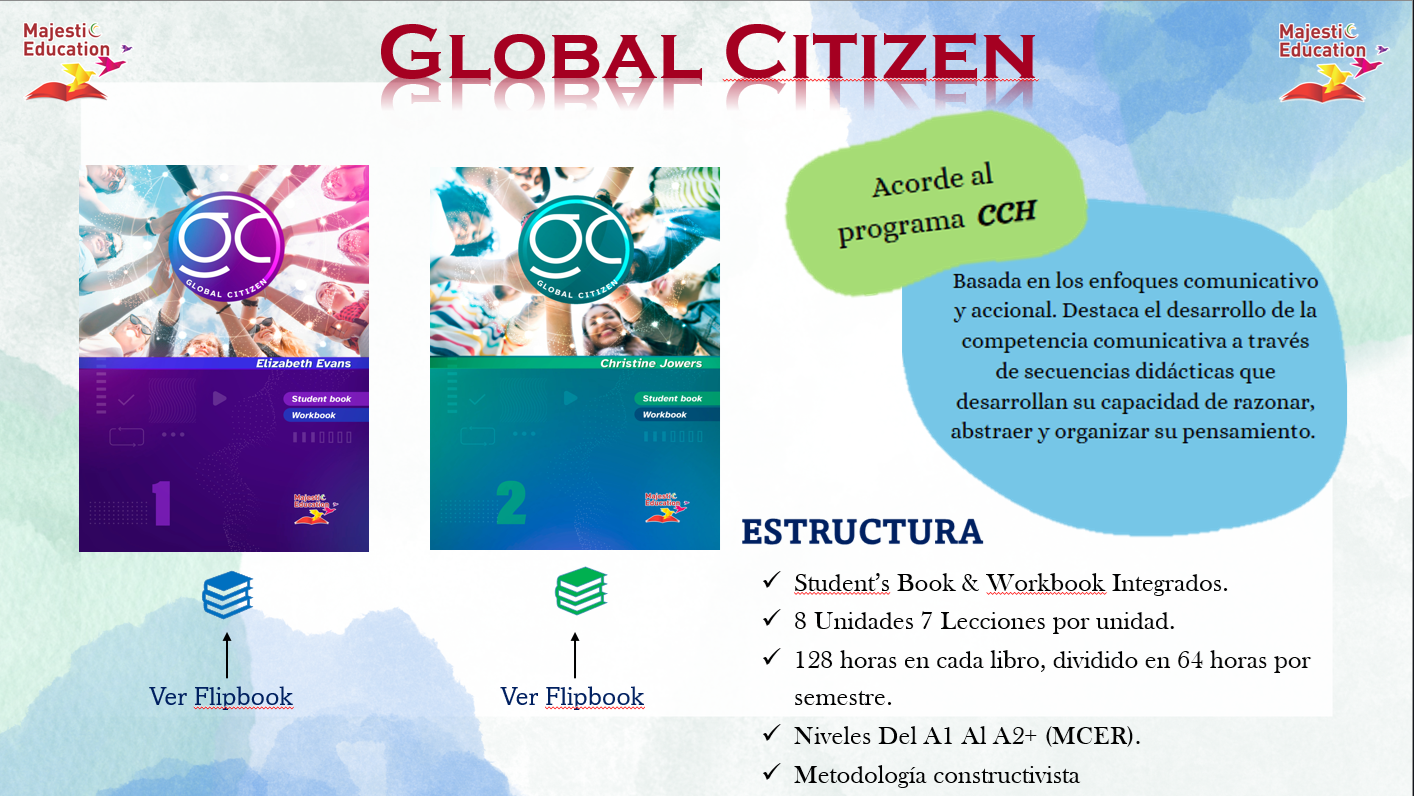 Global Citizen Based on communicative and actional approaches. It highlights the development of communicative competence through didactic sequences that develop their ability to reason, abstract, and organize their thinking.